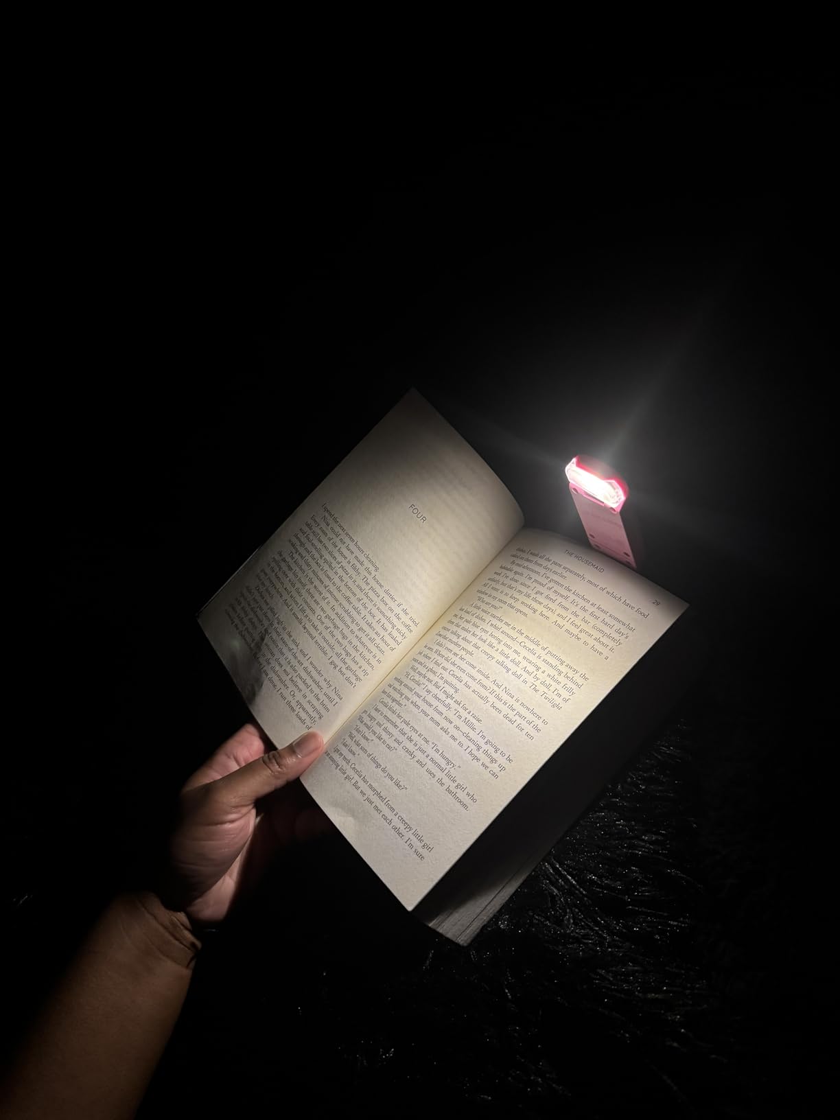 Was reading twilight with it. 10/10 helps me read when I’m too lazy to turn on the light all the time