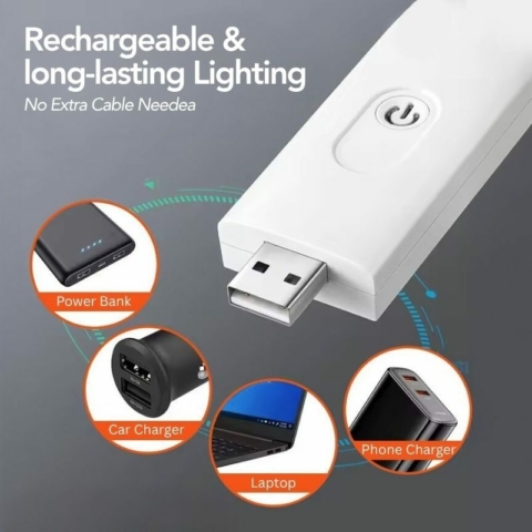 This lamp features a built-in USB rechargeable battery - both energy-efficient and budget-friendly. Simply plug it directly into any USB port from your laptop, power bank, adapter, or car charger - no extra cables or batteries needed.